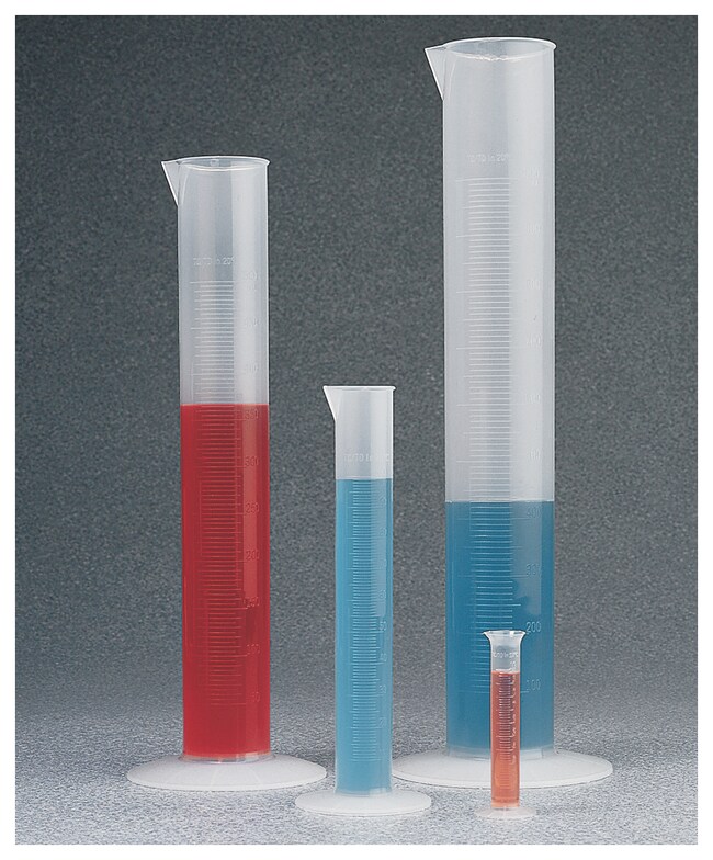 标有刻度的量筒,聚甲基戊烯,蓝色聚丙烯底座,250ml容量